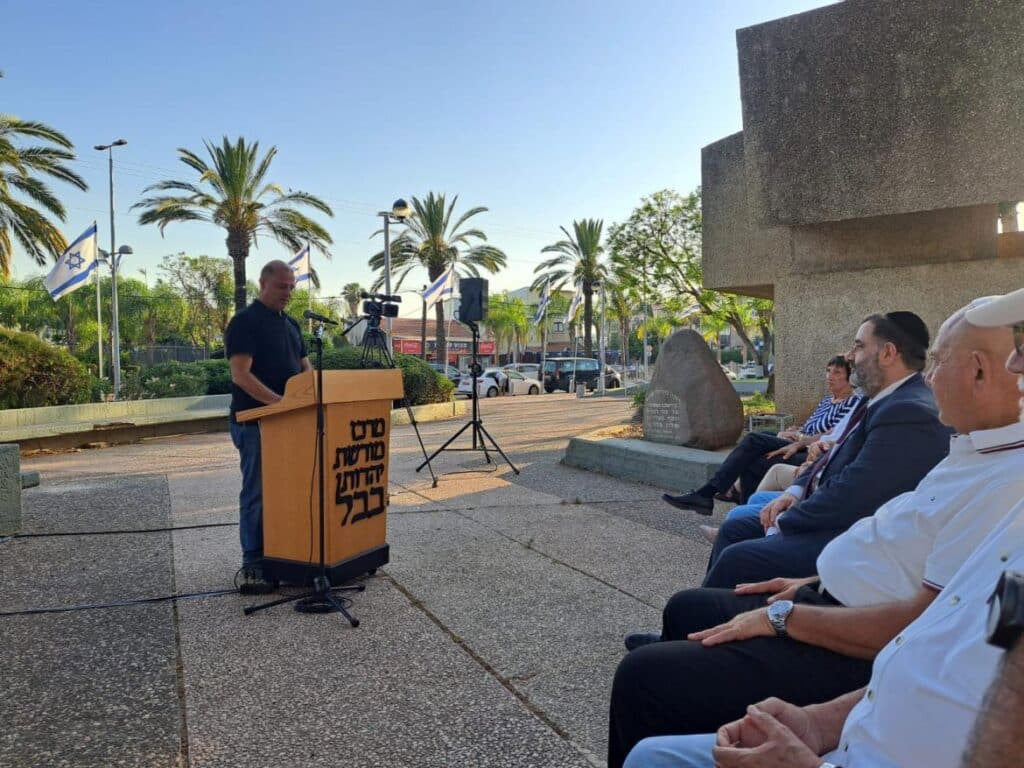 במהלך הטקס, אותו הנחה צבי סלטון, נאמו פרופ' אפרים צדקה, יו"ר מרכז מורשת יהדות בבל, רב העיר, הרב ציון כהן וסגן ראש העיר, עופר בוזי.