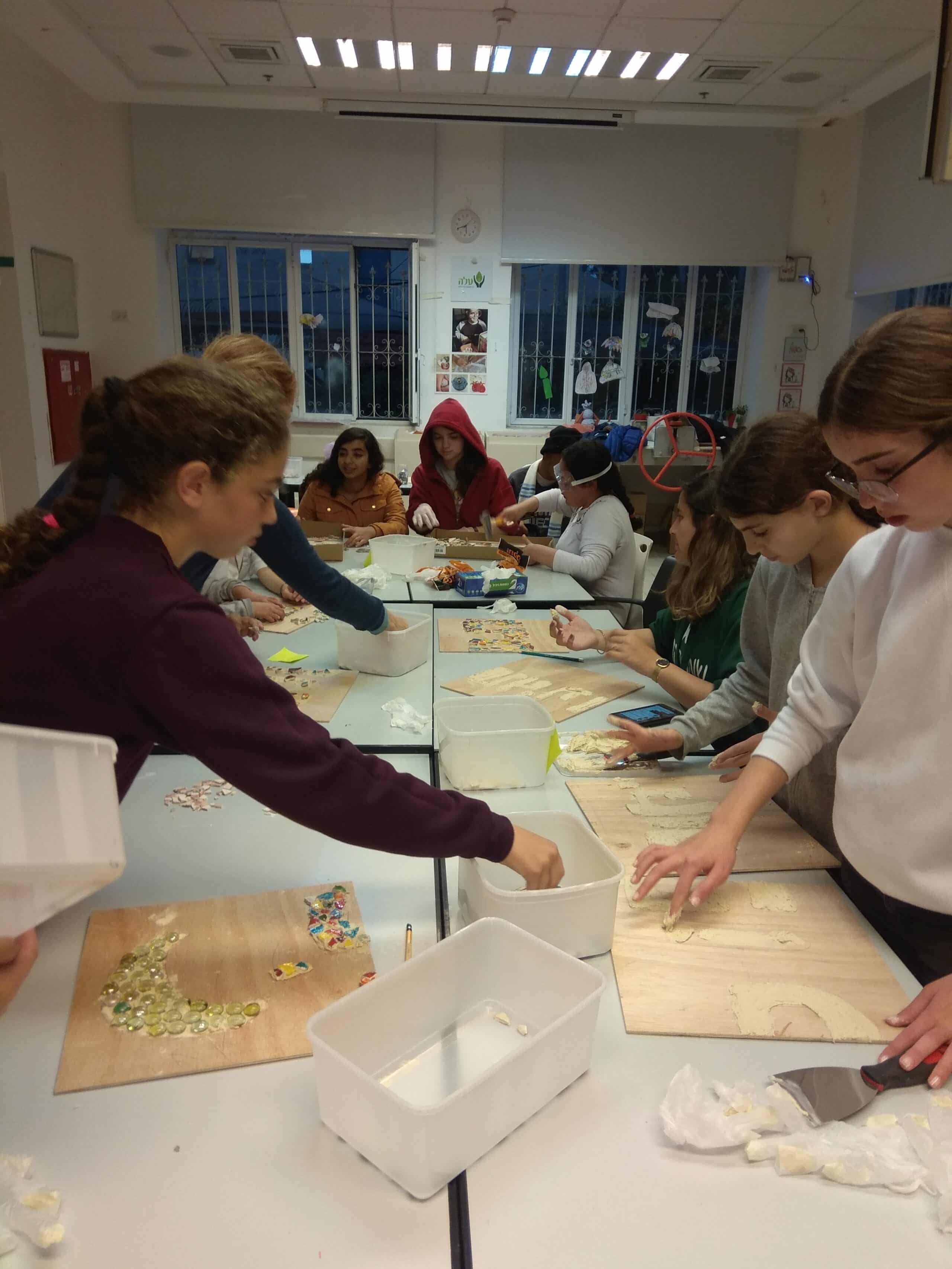 במסגרת הפעילות ענבל, דרור, דרור, סוהי ואדווה, אספו יחד עם הדיירים מוצרים פגומים שיצאו מהייצור של דיירי התעסוקה, ובתהליך ארוך של עבודה קשה, יצרו מהם יחד תמונות פסיפס שלמות ויפות, שיקשטו את בית הספר ואת המרכז. בין יצירת התמונות, נפגשו הבנות וערכו היכרות עם דיירי המרכז, ויצרו הזדמנות למפגש בלתי אמצעי, ויכולת לשאול שאלות בגובה העיניים. הבנות זכו לחשיפה לאוכלוסייה ולאנשים שלא הכירו לפני, ועברו יחד תהליך משמעותי של קבלת האחר.