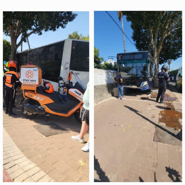 נהג אוטובוס התנגש בעץ בפתח תקווה