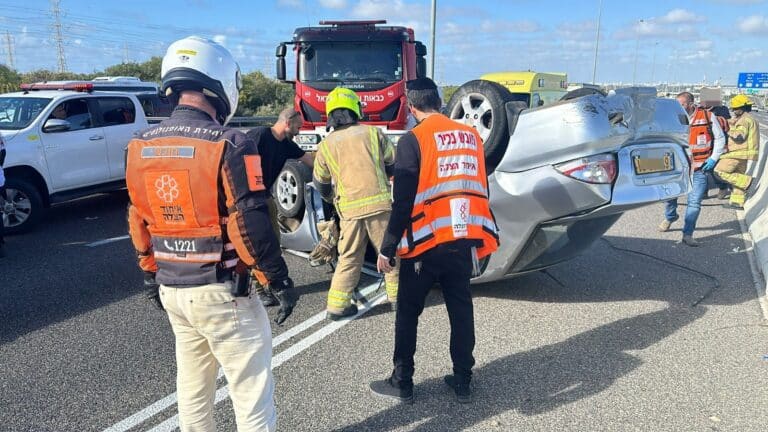 התהפכות רכב בתאונה בסמוך למחלף יבנה (כביש 4)