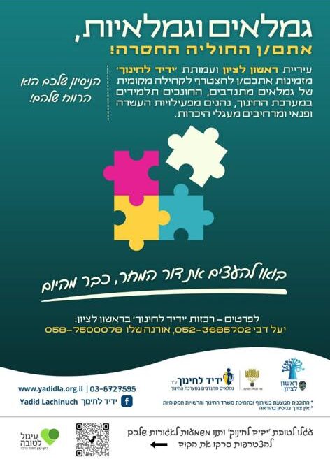 גמלאיות וגמלאי ראשל"צ: בואו להעצים את דור המחר