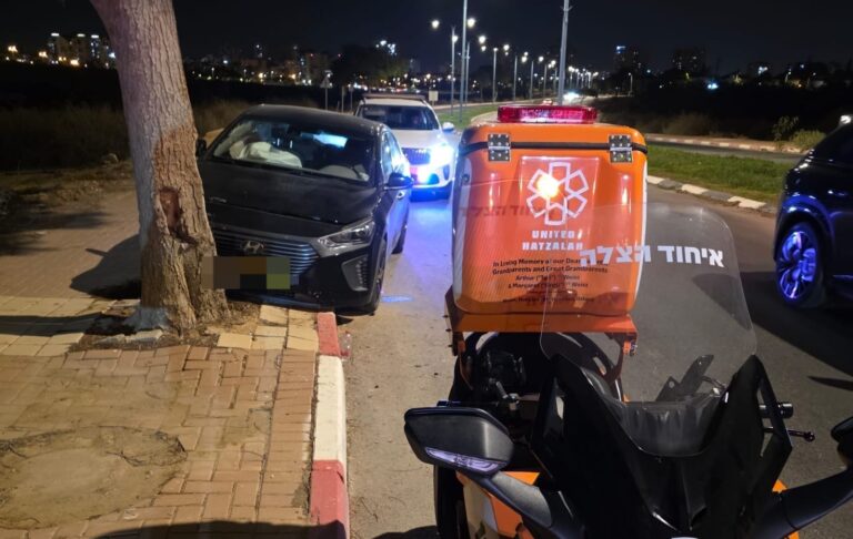 תאונה עצמית בבאר שבע: נהג נפצע לאחר שהתנגש בעץ