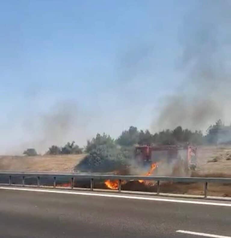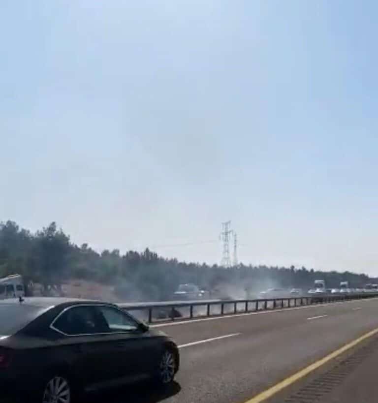 שריפת חורש התפשטה בכביש 6 מחלף קרית גת – עומסי תנועה כבדים