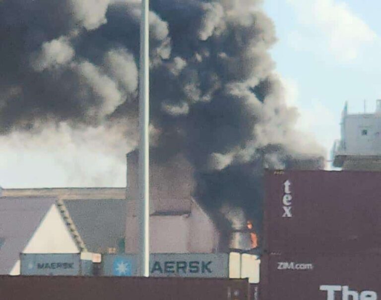 שריפת מסוע פוספטים ובניין של כי"ל-רותם בנמל אשדוד