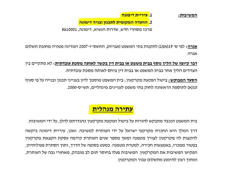 עתירה נגד עיריית דימונה לאחר שהפקיעה קרקע שבבעלות המדינה