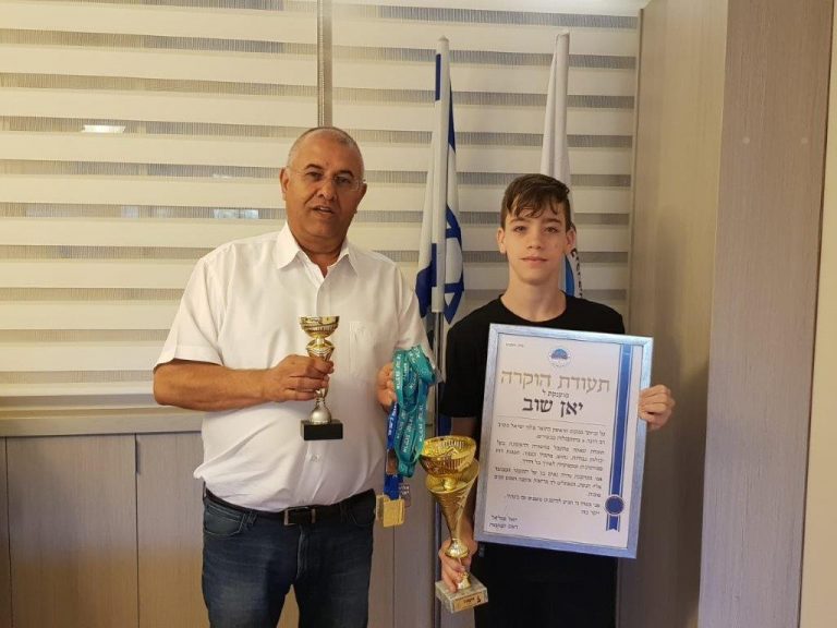 בדרך למחנה האימונים באיטליה, יאן שוב, שזכה באליפות ישראל בקרב רב דרגה 5 ביקר בלשכת ראש המועצה. החלום: אולימפיאדה 03/07/2019 05:33