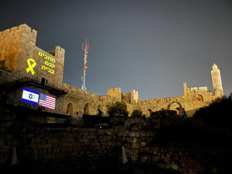 לקראת חזרתם של החטופים: המחווה המיוחדת על חומות העיר במגדל דוד בירושלים