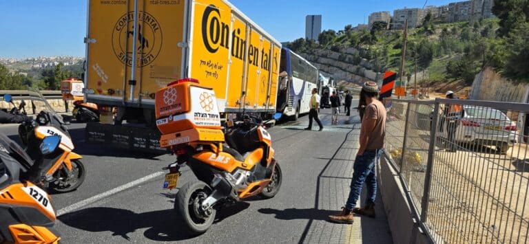 תאונה בין משאית לאוטובוס בכביש בגין בירושלים