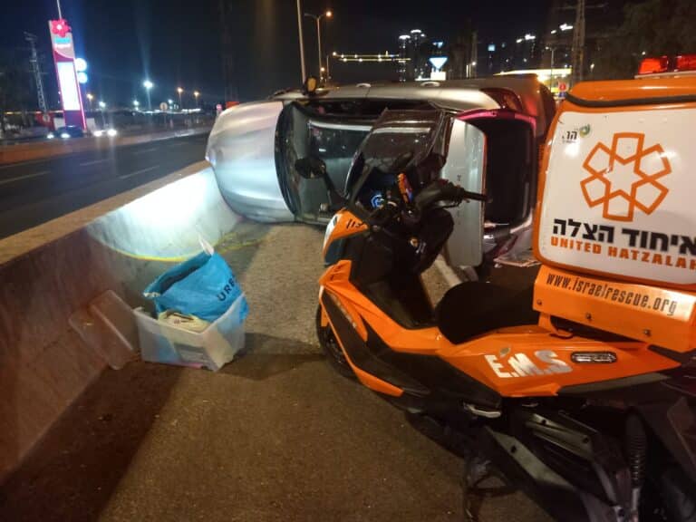 נהג רכב נפצע בינוני כתוצאה מהתהפכות רכבו סמוך למחלף נתניה