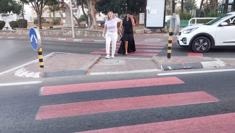מעברי החצייה בגן יבנה נצבעו בורוד