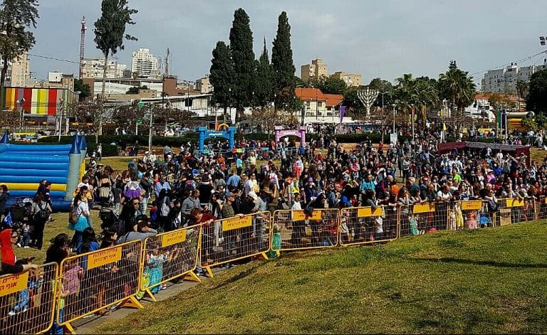 רבע שעה מפתיחת אירועי פורים בגן המייסדים: כ-4,000 איש הגיעו לחגיגות. הצפי: 10,000 משתתפים 12/03/2017 13:10