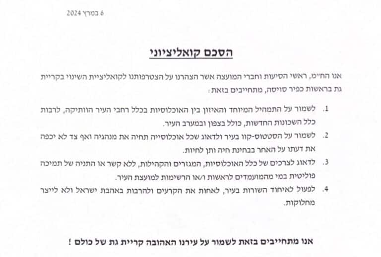 פרסום ראשון: ההסכם הקואליציוני החזק בקרית גת נחשף