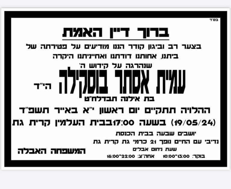 עטרת ראשינו נפלה: עמית בוסקילה תובא למנוחות בקריית גת