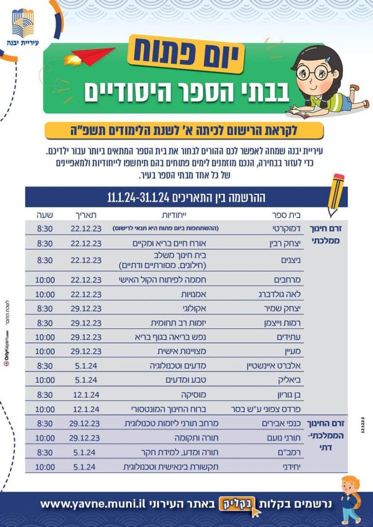 ימים פתוחים לקראת פתיחת ההרשמה לשנת הלימודים הבאה בעיר יבנה