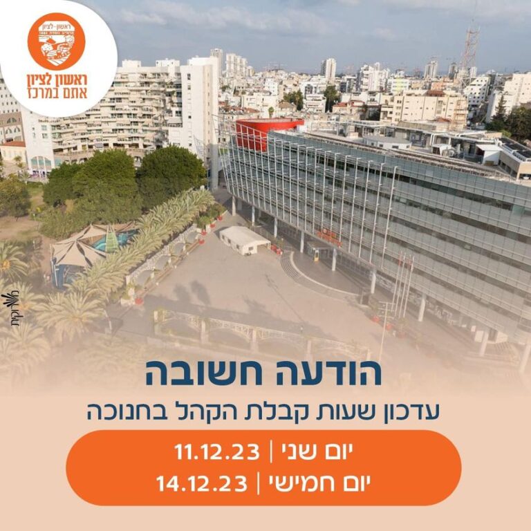 שינויים בשעות קבלת קהל בחנוכה בעיריית ראשון לציון