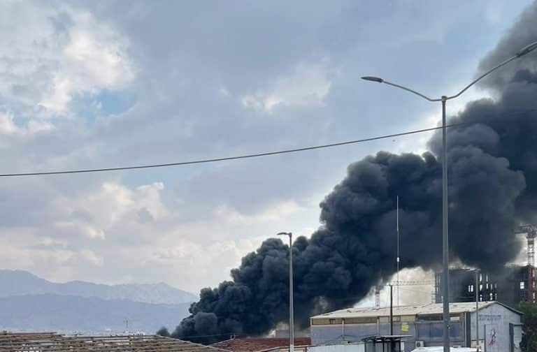 רגע לפני שבת: שריפה ענקית באילת | צפו בתמונות