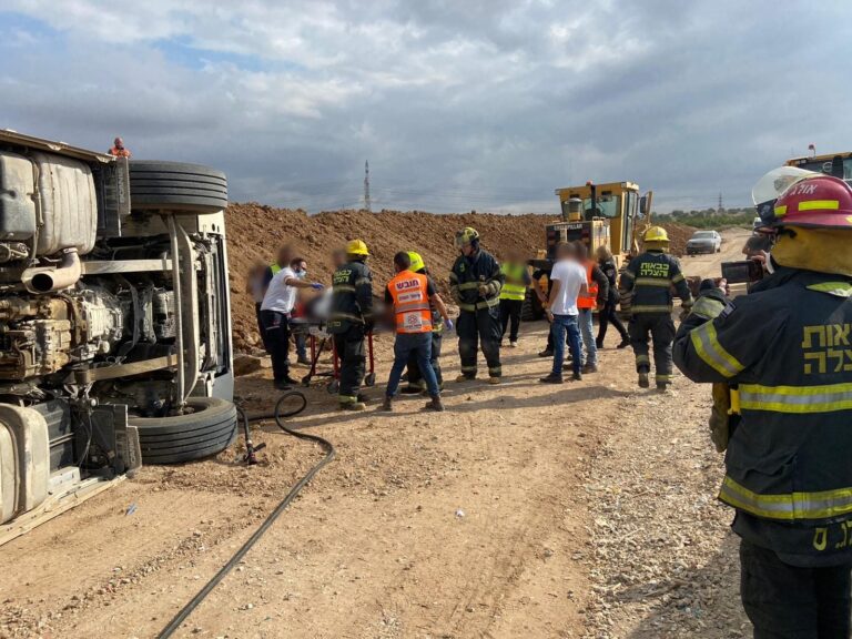 פצוע בינוני כתוצאה מהתהפכות משאיתו בקרית גת