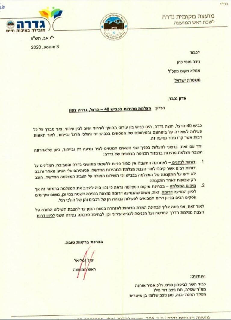 סערת דוחות התנועה בגדרה | יואל גמליאל: "העברתי בקשה למפכ"ל המשטרה הן לבחינת מיקום המצלמה לכיוון הנסיעה דרומה" 16/08/2020 16:42