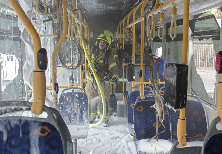 אירוע חריג: שריפת אוטובוס חשמלי בחולון