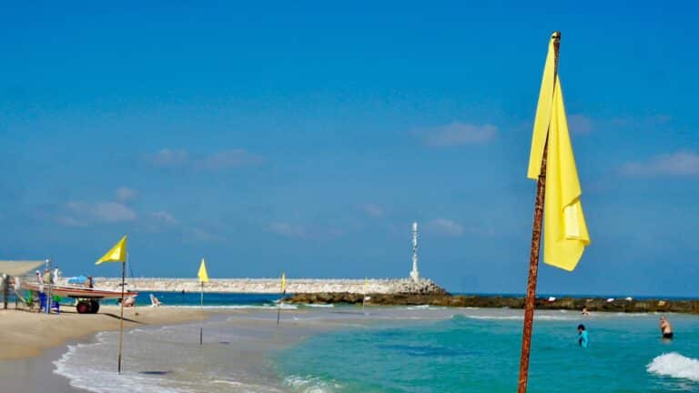 300 ימים לשבעה באוקטובר: חופי הרחצה באשקלון נצבעו בצהוב
