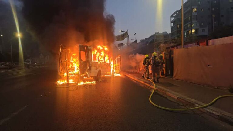 שריפת מיניבוס בכביש 4 מול גבעת שמואל