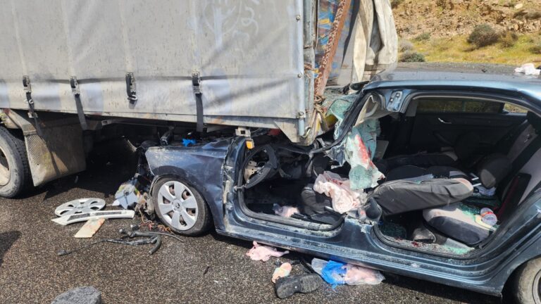 לכוד בתאונה בין משאית לרכב פרטי בכביש מספר 1, בין מצפה יריחו לאלמוג