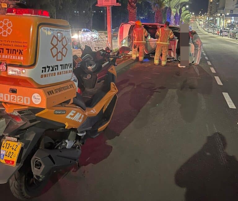 צעירה התהפכה עם רכבה באשקלון