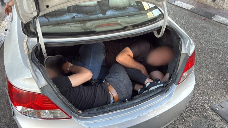 תיעוד: נעצר נהג שניסה להבריח בתא המטען האחורי שני שוהים בלתי חוקיים
