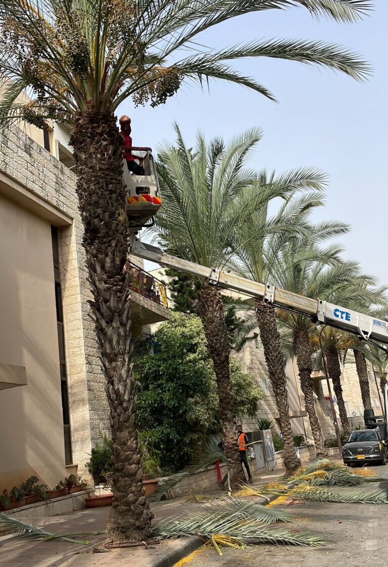 עיריית מודיעין מתחילה בגיזום עצי הדקל בשדרות עמק החולה