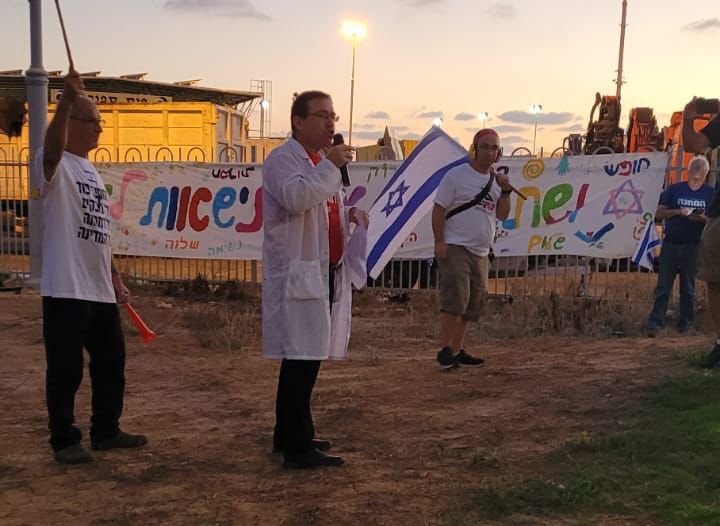 פרופ' חגי לוין מרחובות נאם בהפגנה בצומת בילו
