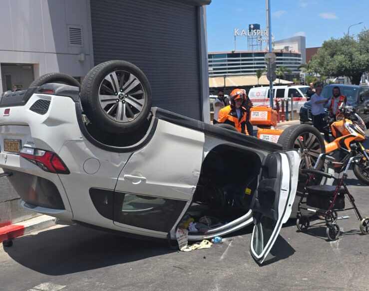 תאונת דרכים בראשון לציון: בני זוג קשישים נפגעו לאחר שהתהפכו עם רכבם