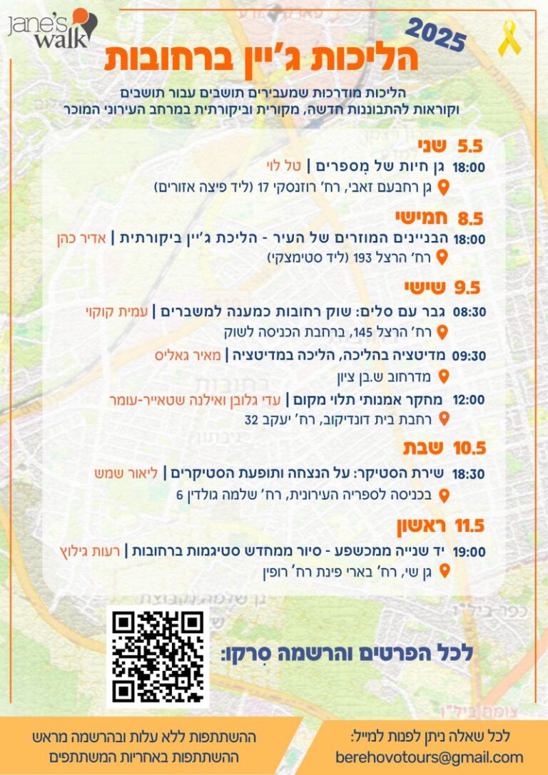 רחובות: סיורים חינמיים לקהל הרחב בסופ"ש הבא