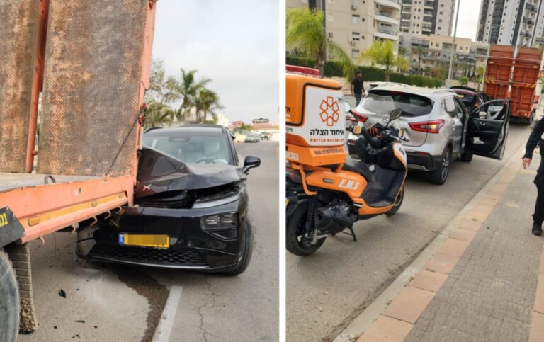 נתניה: שני כלי רכב וקטנוע התנגשו – שני נפגעים קל בזירת התאונה
