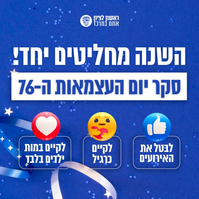 יהיו או לא יהיו? תושבי ראשל"צ מתבקשים להשיב בסקר האם לקיים את אירועי יום העצמאות