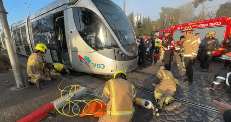 אירוע חריג ביותר בירושלים: הולך רגל נלכד מתחת לרכבת הקלה