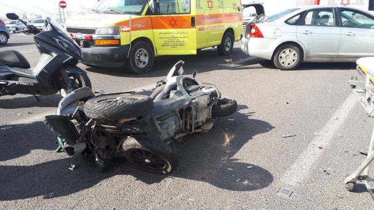 רוכב אופנוע כבן 55 נפצע במצב בינוני כתוצאה מפגיעת רכב