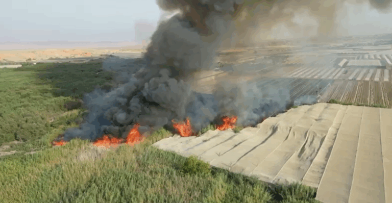 שריפת חורש גדולה פרצה סמוך לנחל הערבה ומתחם המחזור בעין יהב. קב"ט