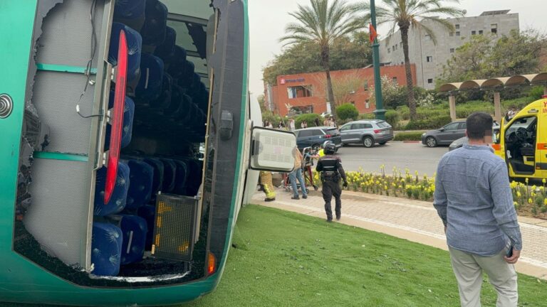 ראשוני: 15 פצועים בהתפכות אוטובוס בראשל"צ